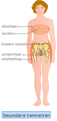 In de twee afbeeldingen zie je primaire en secundaire geslachtskenmerken bij vrouwen.